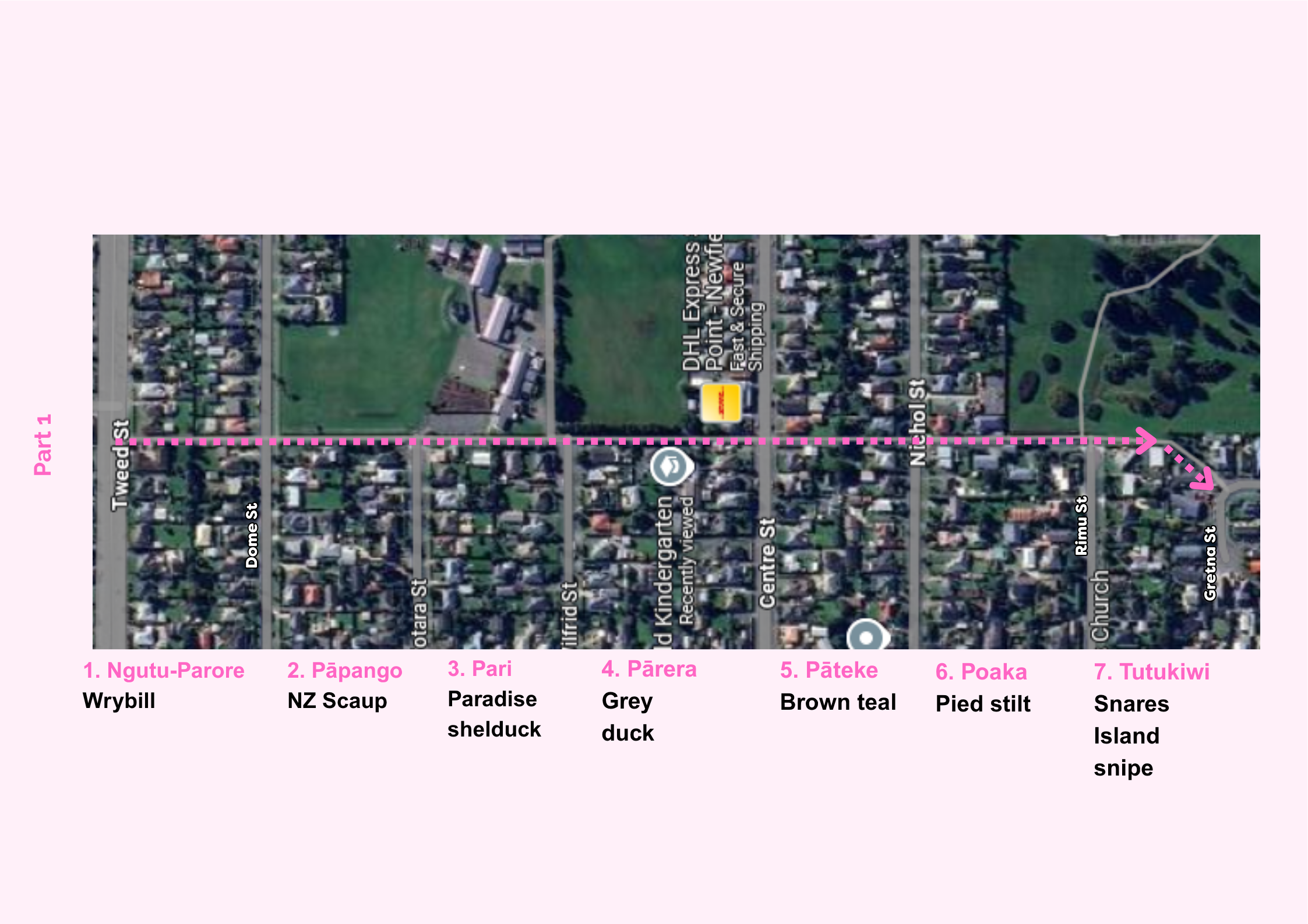 South Alive's discussion with Invercargill City Council's Park and Recreation team revealed that the walkways already had Te Reo Māori bird names assigned to them. This became the starting point for the first visible change in the space - the introduction of stencil designs featuring the names of each block of the walkways.